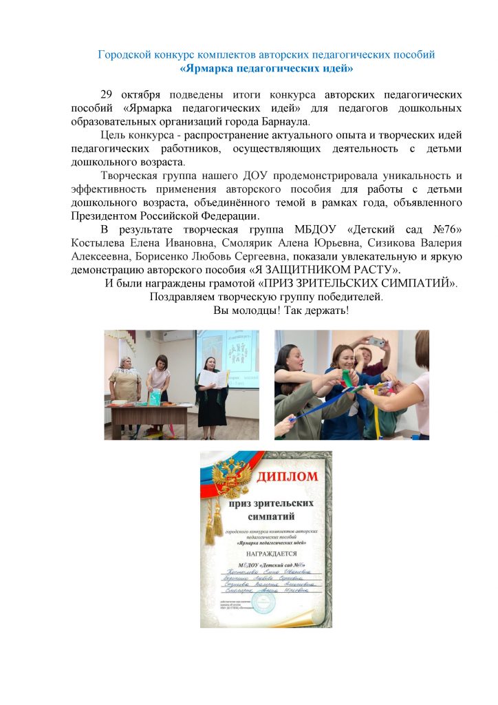 Городской конкурс комплектов авторских педагогических пособий «Ярмарка педагогических идей» сайт05.11.202505.11.2025 Новости Комментариев нет ← 22 августа-День российского Флага Победители открытого городского конкурса-фестиваля педагогических идей «Методический марафон» → Добавить комментарий Отменить ответДля отправки комментария вам необходимо авторизоваться.