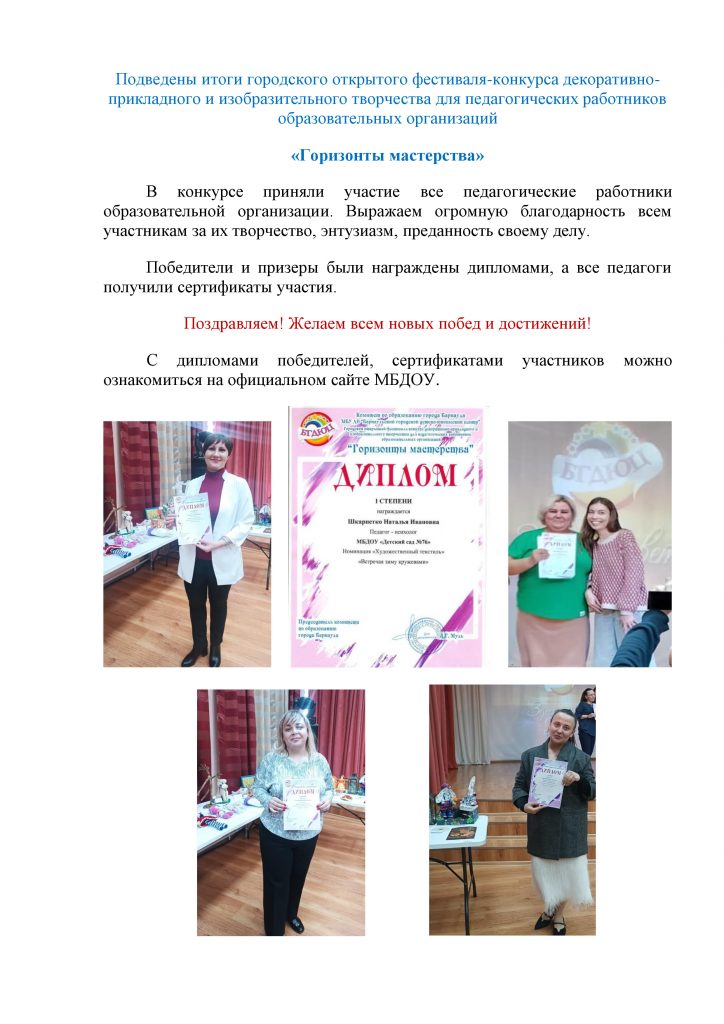 Подведены итоги городского открытого фестиваля-конкурса декоративно-прикладного и изобразительного творчества для педагогических работников образовательных организаций «Горизонты мастерства»